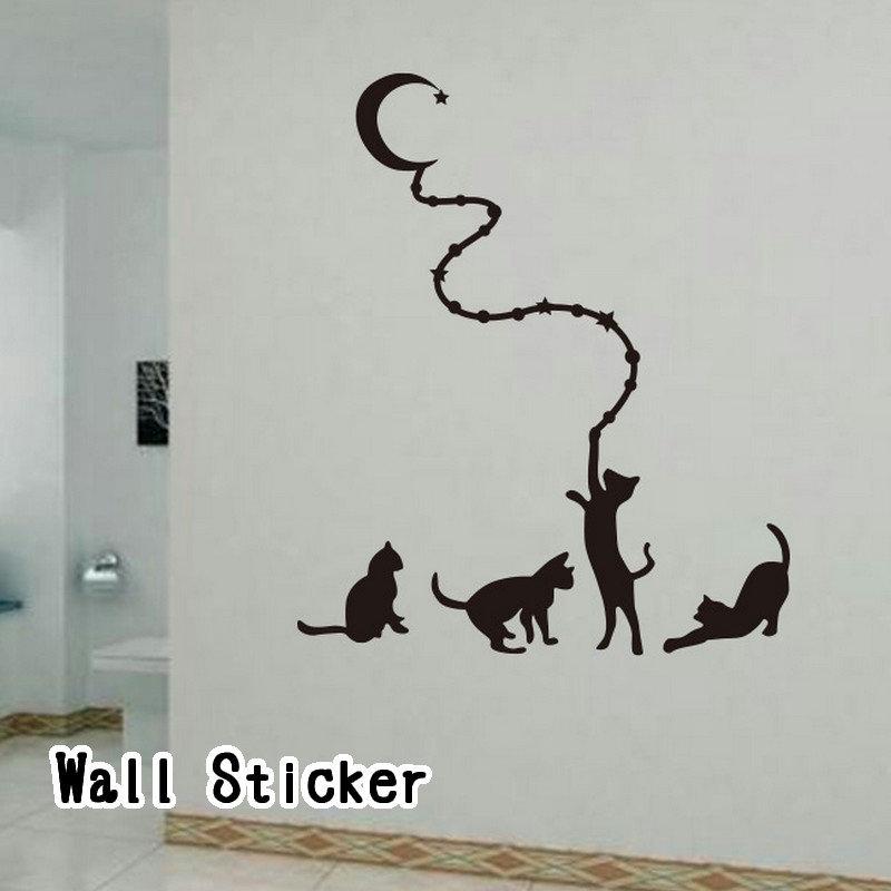 ウォールステッカー 壁紙シール 転写式 ステッカー シール Pvc シルエット モノクロ モノトーン シンプル 白黒 猫 ねこ ネコ 月 ムーン イバ